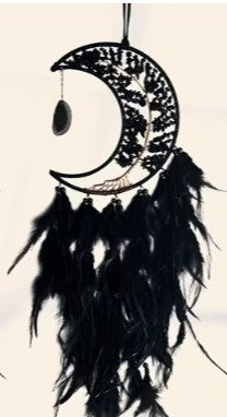 Create a peaceful, mystical atmosphere with this elegant Black Moon Tree of Life dream catcher. Designed with a crescent moon frame, crystal accents, and flowing black feathers, it adds soft movement and celestial beauty to any space.